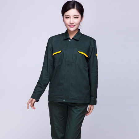 苏州鹰诺服装:墨绿拼黄色工作服AC09-3