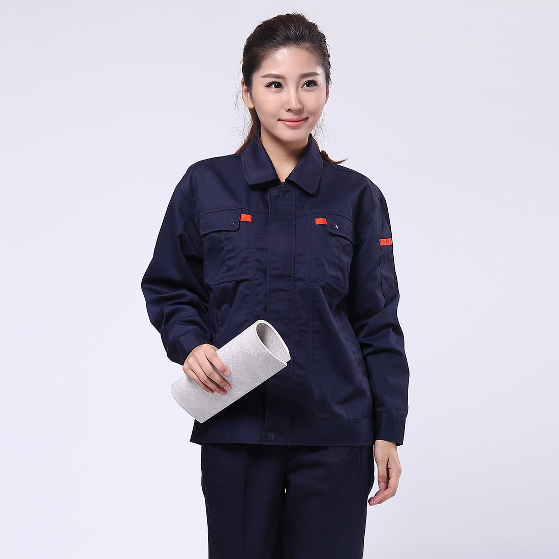深蓝配桔红色工作服AC069