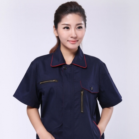 苏州鹰诺服装:藏青拼大红夏季工装工作服AD103