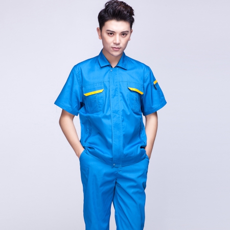 苏州鹰诺服装:艳蓝色短袖工作服AD12-4