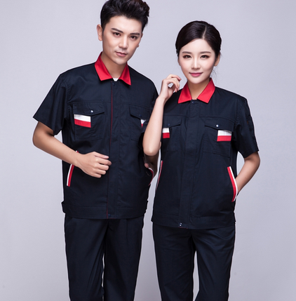 “新服装、新形象、新面貌”,在炎热的夏季为您的员工更换这样清爽的工装,让员工能够以崭新的面貌和姿态迎接未来的挑战,全力以赴公司新的明天。这款工装以藏青色为主色,口袋处拼色设计,既不过分彰显又不失时尚。整体款式装简洁舒适,干练大方,举手投足间,尽显职业风采。在色彩上不仅能使工装更耐脏,还能使员工显得更加沉稳和专业。 这款夏季工装上线以来,深受各大厂机械行业及生产制造行业客户的喜爱。