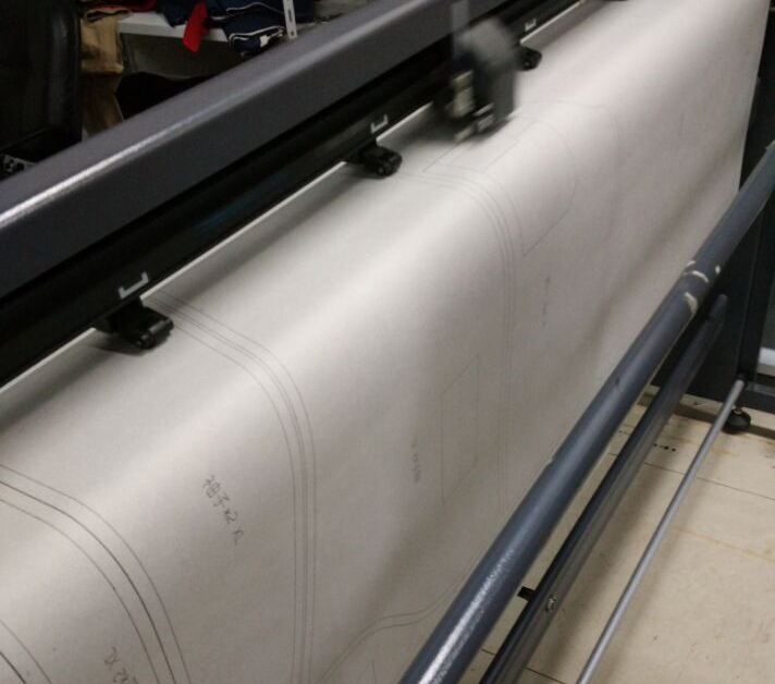 第四、对于条格纹的面料,拖料时要注意各层中条格对准并定位,以保证服装上条格的连贯和对称。