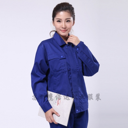 苏州鹰诺服装:艳蓝涤棉纱卡电子工作服AC082-DZ