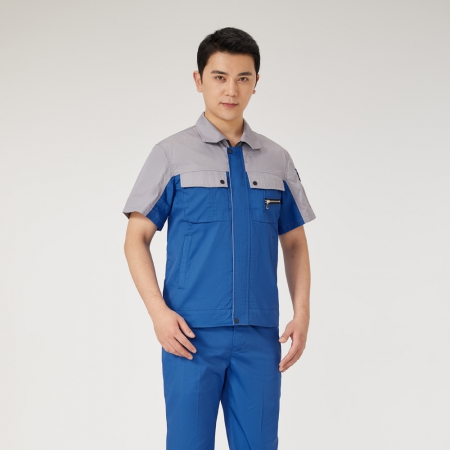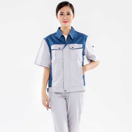 苏州鹰诺服装:浅灰拼艳蓝色工作服AD2204-4