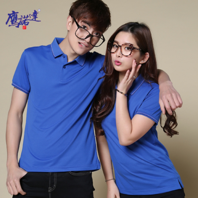 牛蓝提花翻领超爽网眼棉T恤衫ID1528-1
