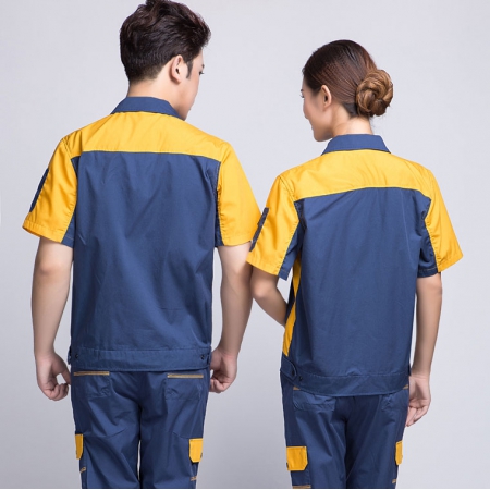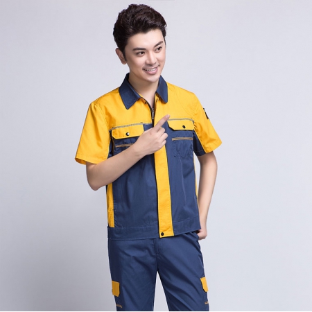 苏州鹰诺服装:黄拼驼色工作服AC17-4
