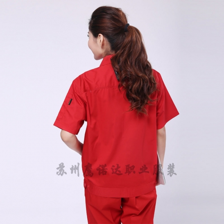 苏州鹰诺服装:大红配浅灰春秋工作服AC078