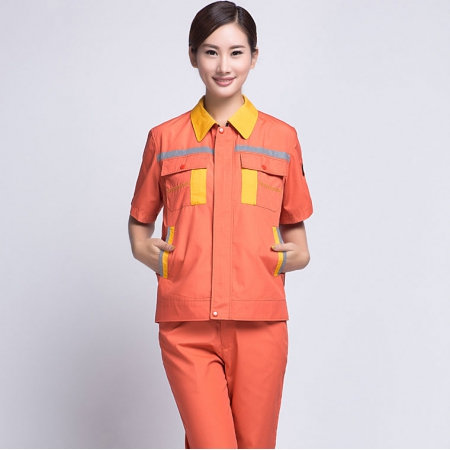 苏州鹰诺服装:深蓝配桔红春秋工作服AC069