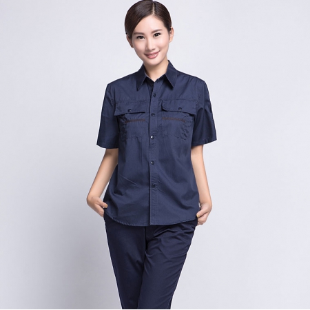 苏州鹰诺服装:藏青色夏季短袖工作服AD10-3