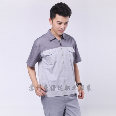 绿灰拼桔黄夏季工作服AD106