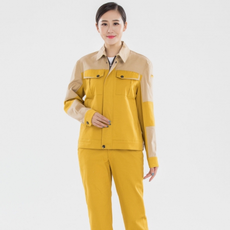 苏州鹰诺服装:黄拼驼色工作服AC20-4