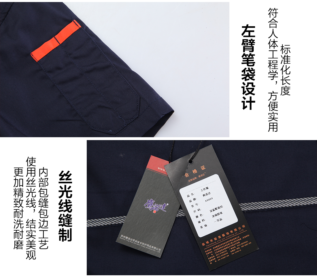 - 游客于 2017-08-10 11:02:46 发表深蓝配桔红夏季工作服套装AD069