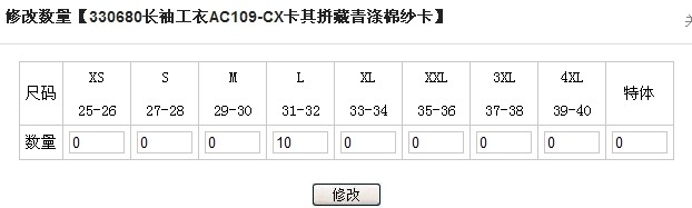 第③步:修改产品尺码及数量 苏州鹰诺服装:返回顶部