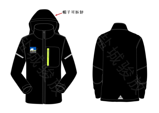 内蒙古南戈壁滩能源有限公司客户准备定制软壳衣,客户是选好了迪卡侬的款式给我们准备定制的,但是由于迪卡侬款式的帽子是不可拆卸的所以客户就是找我们按照迪卡侬的款式打样,要求,帽子可拆卸,左右胳膊带反光条,要加logo,所以最终给客户出了一个根据他的要求定制的工作服效果图;