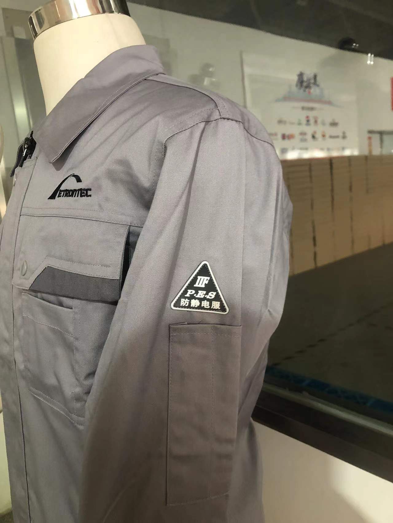 此次定制春秋装工作服选用的是我们的浅灰色防静电工作服。,性价比很高,价格很实惠。品质要求也是很高的。虽然没有看过样衣,但是也看了细节图了解了质量之后就确定下来了。