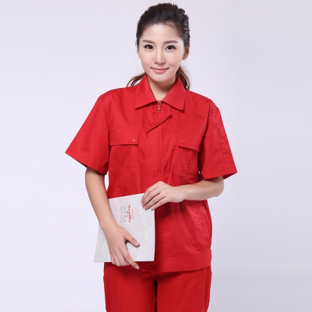 苏州鹰诺服装:大红纯棉工作服AD091-QM