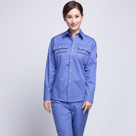 苏州鹰诺服装:湖蓝色夏季长袖工作服AC10-2