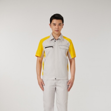米白拼浅绿色夏季工作服AD17-2-XJ