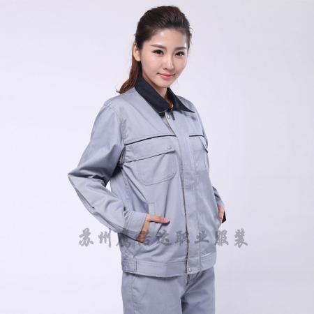苏州鹰诺服装:深灰配浅灰涤棉纱卡印刷工工作服AC076-YS