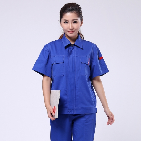 苏州鹰诺服装:艳蓝短袖工作服AD082-DX
