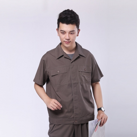 苏州鹰诺服装:棕灰短袖工作服AE581-DX