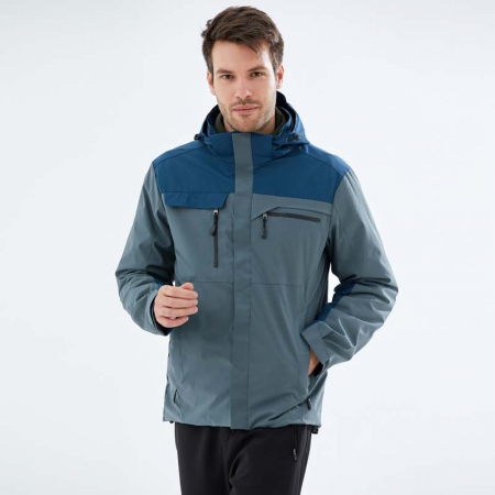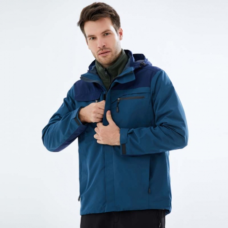 苏州鹰诺服装:湖蓝拼色冲锋衣CF1902-6