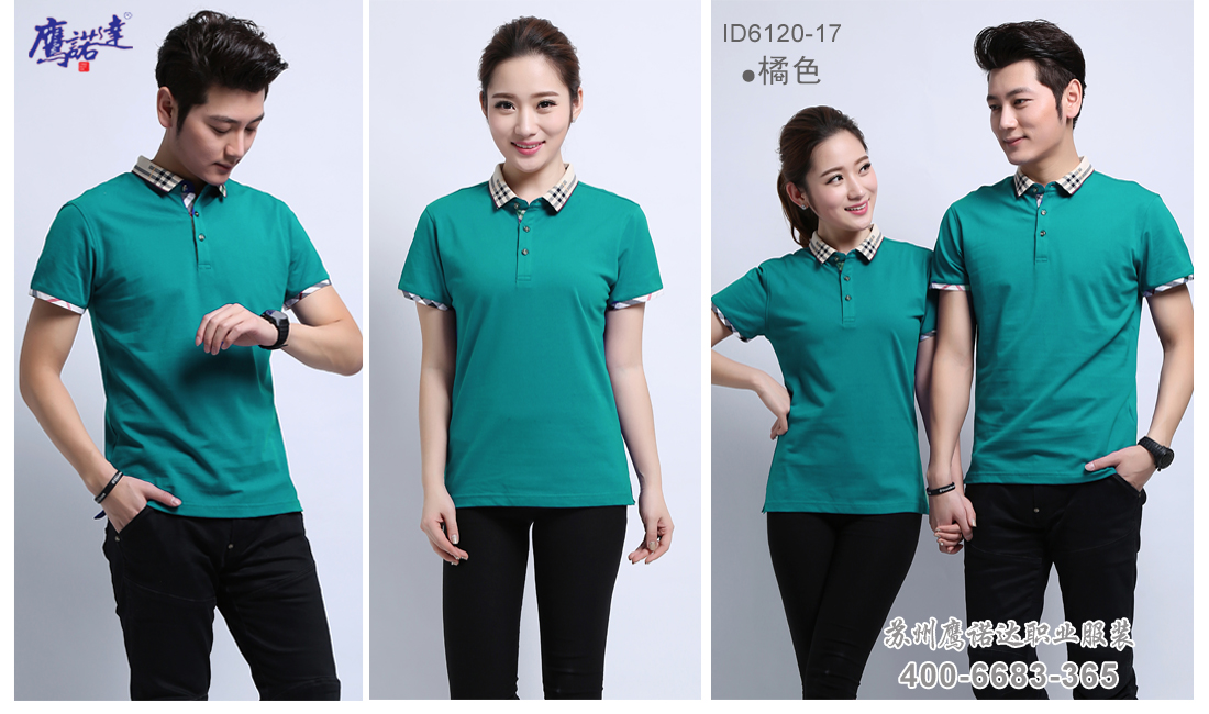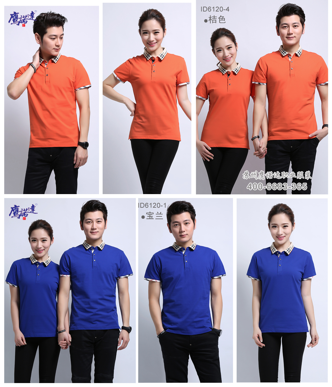桔色提花领莱赛尔纤维棉广告衫ID6120-4