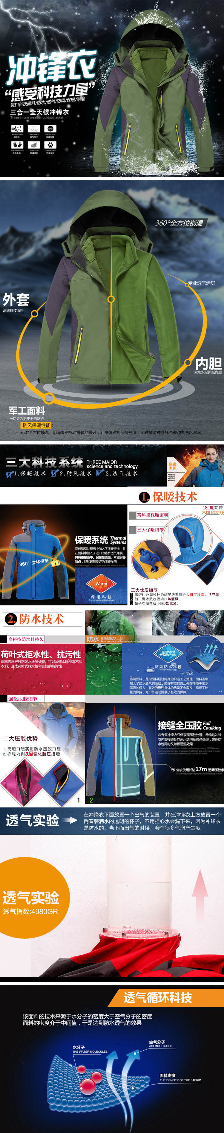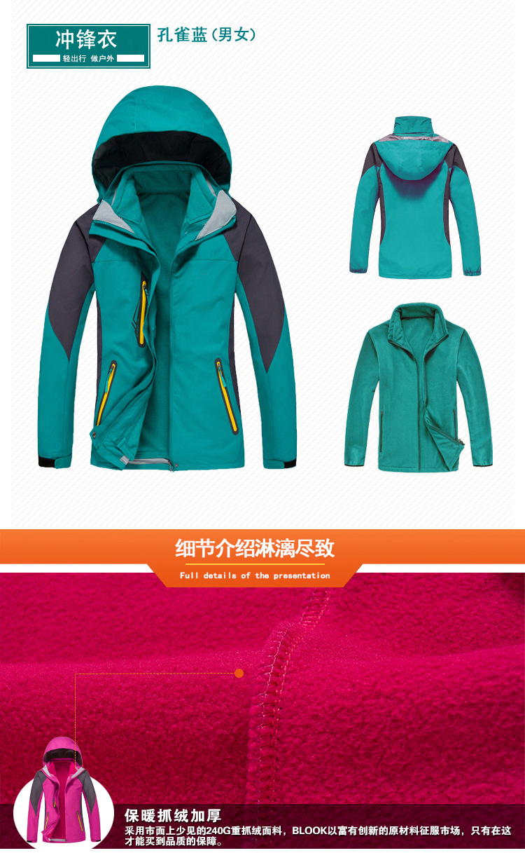 2017冬季新款CFDG1133冲锋衣定做,冲锋衣三合一