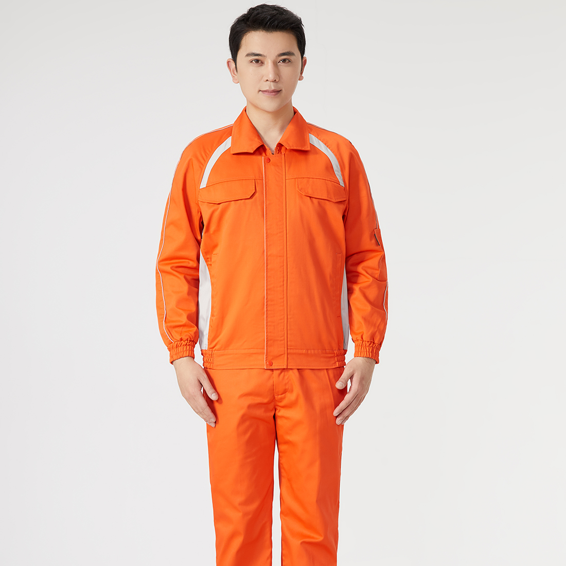 苏州鹰诺服装:深蓝配桔红夏季工作服AD069