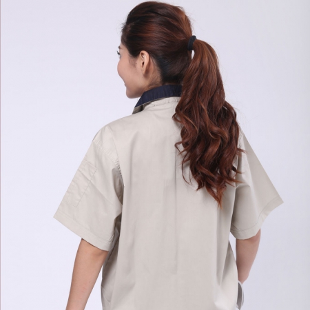 米色拼藏青CVC纱卡春秋工衣AC112