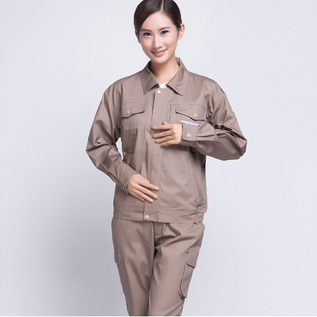 苏州鹰诺服装:驼色拼浅灰工作服AC17-3
